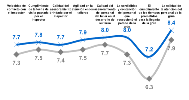 El relevamiento muestra una importante mejora en todos los aspectos de la atención de y gestión de los siniestros de automóviles; destacándose por primera vez en varios años el incremento de la satisfacción en los tiempos de llegada de las grúas.